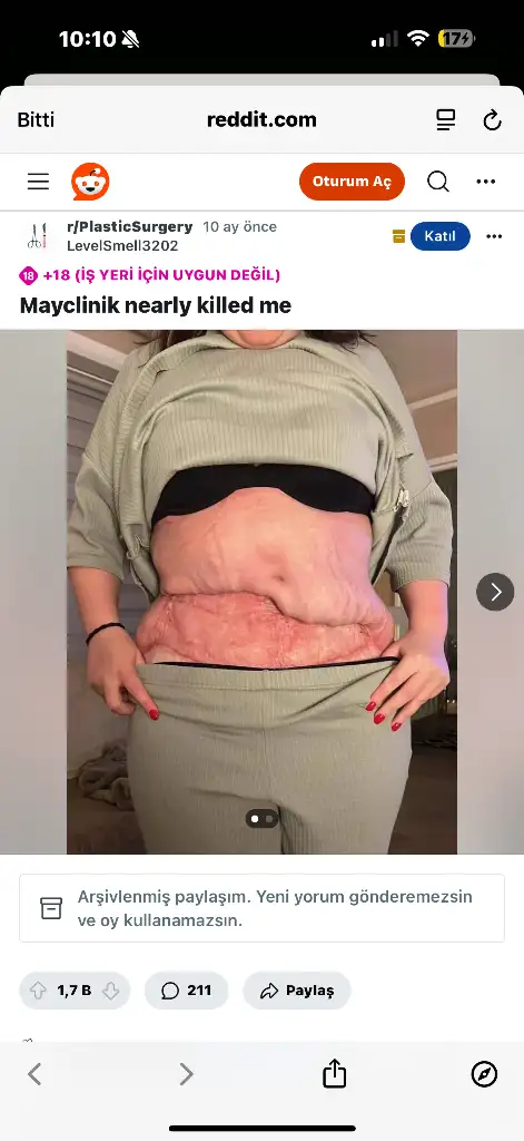Evet başkasına ii gelen bize ii gelmeyebilir araştırarak bulduklarımız bunlar daha bilmediğimiz neler vardır kişiye görede değişir bence totale bakmak lzım benm de kafam çok karışık dr burak sercen erçin varmış sarper mete ve mete aksu onlara bakıcam sırayla bunlar hk bilginiz varmıdırŞimdi baktım bende evet. Ameliyattan 2 gün sonra ciddi nekroz gelişmiş, dikişleri açılmıs bir sürü komplikasyon yaşamış. Karnı siyahlaşmış ve çok fazla ölü doku çıkarılmıs nekroz dan dolayı. Deriden greft alıp yama yapılmıs. Organ fonksiyonlarında bozulmalar yaşamış. Bir sürü ameliyat olmak zorunda kalmıs ve yoğun bakımda yatmıs. Süreç korkunç sonuçta öyle malesef. Ne kadar araştırsakta sizin memnun kaldığınız bir başkasında komplikasyon olabilir gibi durum bunu gösteriyor sanki. İyice modum düştü şu Dr aramaktan. Hangisine heveslensem mutlaka bişey çıkıyo