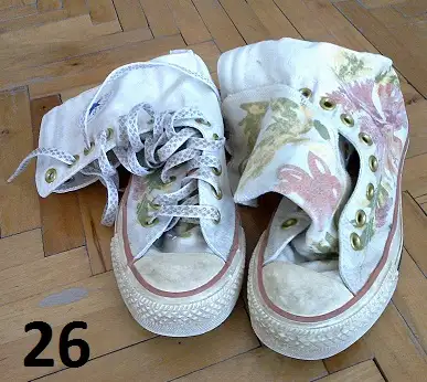 biraz garip ama şöyle birşey var.ikinci parmak baş parmaktan uzun ama sivri olduğu için ölçümde farketmezse başparmaktan topuğa 22.7 diyebiliriz