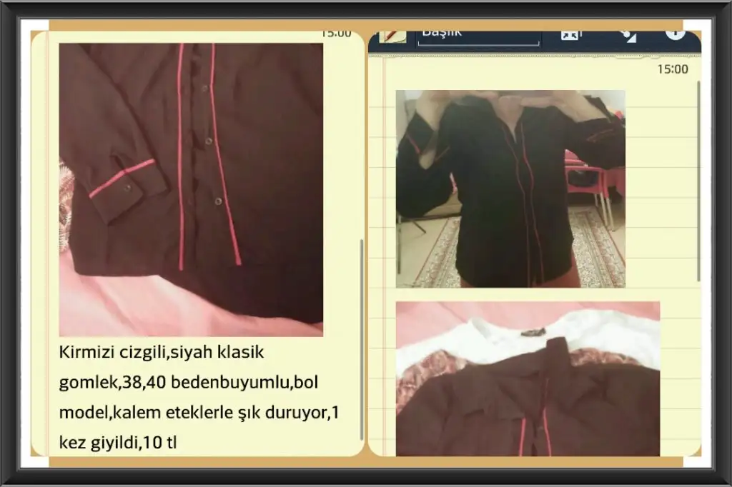 siyah kırmızı klasik gömlek:38 40 ken giydim.klasik etekle şık duruyor