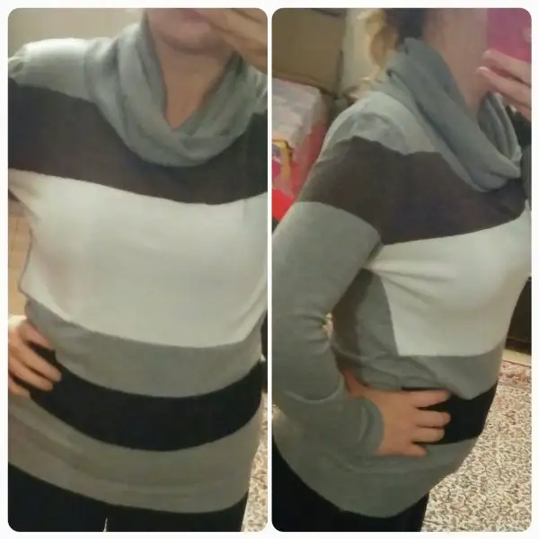 Gri cizgili degaje yaka kazak.38 40 uyu.lu.fabrika marka.sik ve kaliteli.