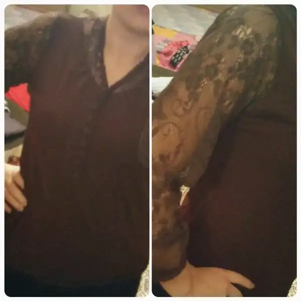 Kahverengi kazak.kollari full dantel.38 40 beden gbi boyu kisadir.daha kadin ve klasik giyinenler icin hos olur.kaliteli bir markaydi.
