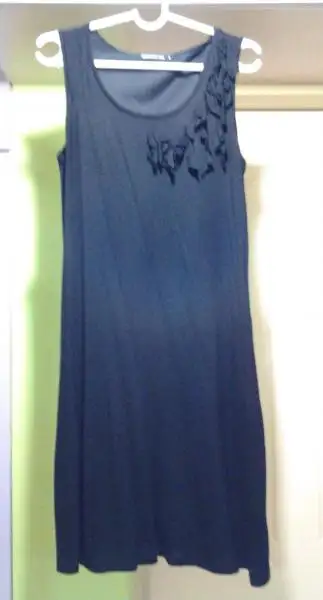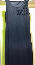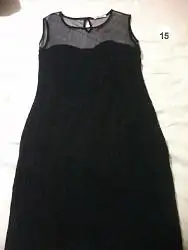 mudo m beden astarlı siyah,kolsuz , dizin birazzık üstü benim boyum 1.58 . Omuzda fırfır detayı var. 10 tl -
