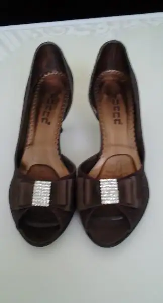 38 numara kahverengi simli taşlı gece ayakkabısı. Hiçbir sıkıntısı yoktur.iç kısmına ayağı vurmasın diye şeffaf taban koydurmuştum. Ayakkabı çantayla beraber alınacak olursa ikisi 50 tl ben ikisine 120 tl vermiştim. Tek ayakkabı 40 tl çanta 20 tl