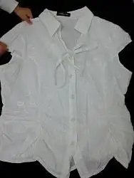 yanlardan büzgülü yarım kol beyaz-ekru arası renginde gömlek. 42 beden diyor ama 40 a da uyar 7 tl -
