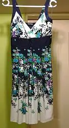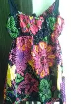42 beden ip askılı cıvıl cıvıl renklerde dizin biraz üstünde elbise. 42 beden diyor ama dar kalıp 60 kg giydim. Astarı yok ama kumaşı kalın iç göstermiyor. ütü istemiyor. 15 tl -