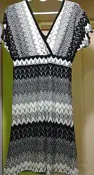 ekol on marka siyah-beyaz-gri tonlarda yarasa kol elbise, astarsız, 1 kez düğünde giyildi. Yandan fermuarlı. Tam dizde. Sırtı da v şeklinde açık. 15 tl -
