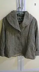 kahve tonlarında 2 düğmeli yakası geniş ceket 38 -40 beden geniş duruyor ama dar kalıp mak.internetten almıştım. 65 kg için uygun hiç giyilmedi fakat etiketi yok 10 tl -