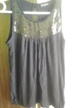 önü pullu çok şık bluz. Sırtında küçük bir penceresi var ( ben öyle diyorum siyah renk. Yandan büzgülü. S-m beden 5 tl -