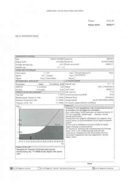 Sonucun normal cikmis canm yatay siradaki siyah cikinti sonucu gosteryo yakina gore dusuk riks cikmis bir sorun yk yani