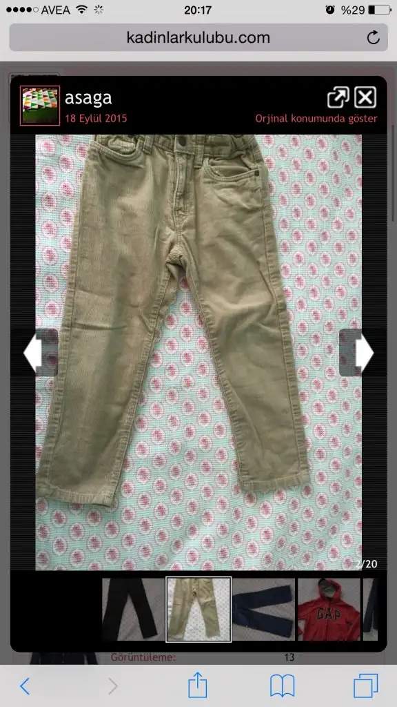 H&M kadife pantolon 10 tl 4-5 yas