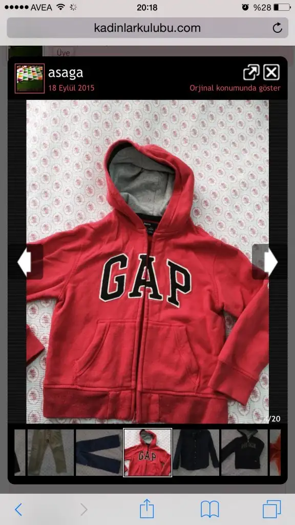 GAP hoodie Sıfır ayarında 1-2 kez giyildi 35 tl 4-5 yas