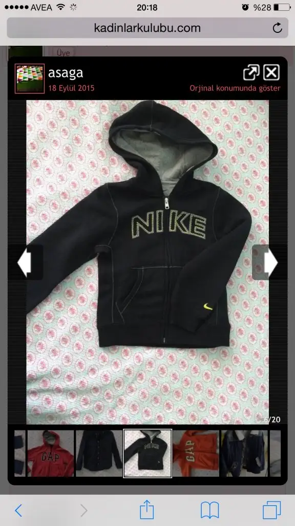 Nike Sıfır kapşonlu 30 tl 5-6 yazıyor ama 4-5 yas uyumlu