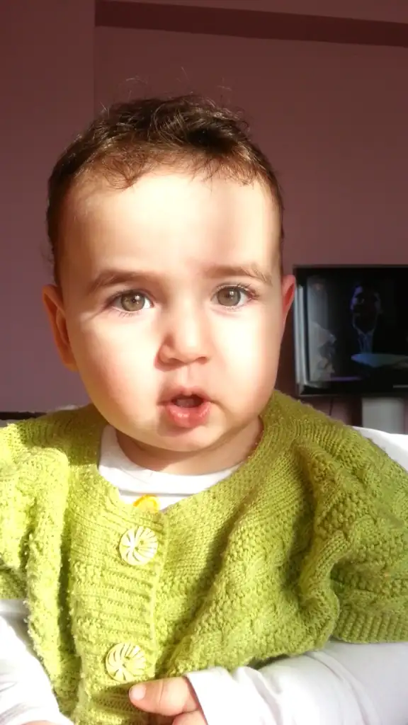 benim kizim 14 aylik hala anne sütü alıyor bugu yarim. kase çorba yarim muz yedi 1 lokma ekmek bir lokmada peynir yedi . Bu yedigi en cok menu.yani genelde bundan daha az yiyor. Suda icmiyor. Bu ara kendi istegi ile gunde bir fincan kadar su iciyor onunda yarisini ustune dokuyor korkarak iciyor dilini cikariyo icmeyi bilmiyo .ama muzlari kocaman kocman veryrm yiyo.mandalinayi butun agzina koyuyrm bitirip kabugunu atiyo. Yogurt yemez . Uzuncaaa yazdim amaa kusura bakma ne yapsam. Saclarida az uzuyor resim attm. Saclar bu kadar bi kere 0 a vurmustuk( neden uzamiyo acaba