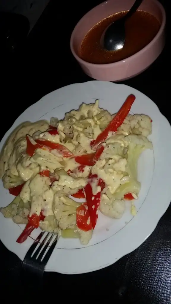 üzerindeki yoğurdu ayrı bi yerde içine zerdeçal, zencefil, pulbiber, nane, zeytinyağı ve birazcık su koyarak karıştırdım. bi mantı üzerine dökercesine döktüm yoğurdu haşlanmış sebzelerin üzerine.