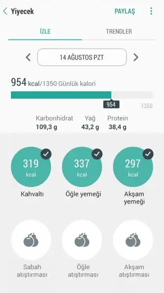 Akşam 2 kaşık taze fasulye az makarna 3 dilim sucuk ayran