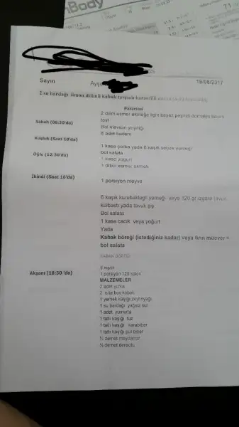 Bu da yarın ki menüm bazal metabolizmam 1309 ona uygun olanlar harfiyen uyabilir bence