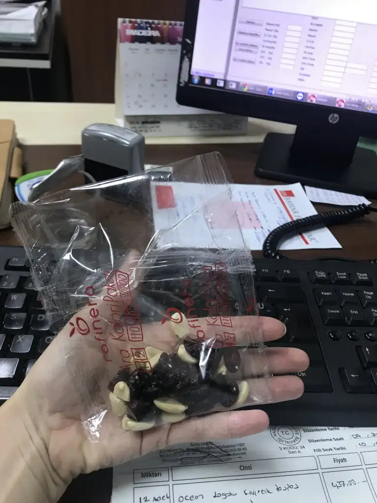 Kayinvalidem koye giderken 1 avuc seker birakti eve bayramdan kalma sanki ama bu kusma baslamadan 3 5 saat once o sekerlerden 3 tane falan arayla yedi acaba bozuk falanmiydi onlarmi bozdu cocugun midesini cunku hic yemez ole seyler degisikte birtek onlari yedi acaba dahami eskiydi bu sekerler kadin birakti gitti offg