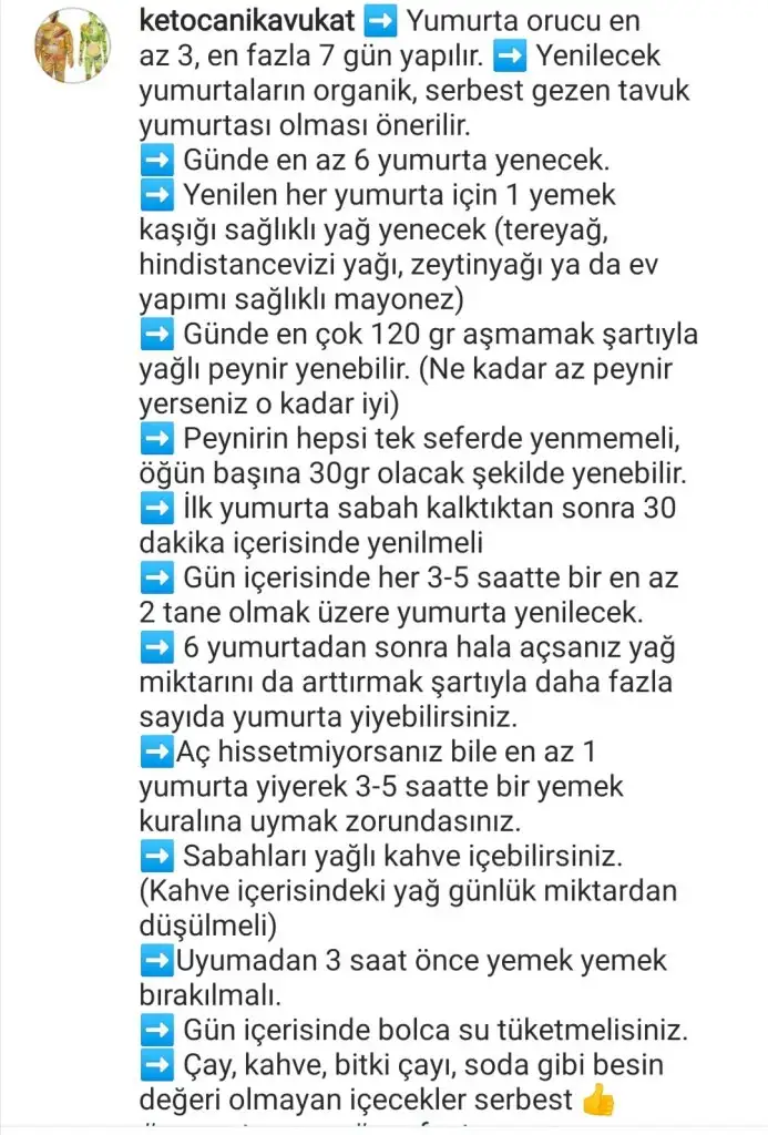 Bu arada ben haftasonu ve Pazartesi yumurta orucu yapacagim.