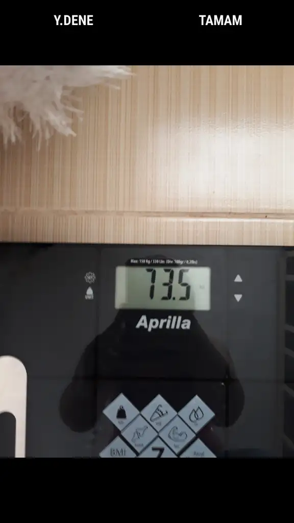 Canim salata ve doya doya zayifla kitabima goz atiyorum ve sonuc bu. Haftaya hedefim 6li sayilari gormek insallah.geçen hafta 74,2 kg gelmiştin canım ama yinede fark güzel 74,8 bir önceki haftanın kilosu