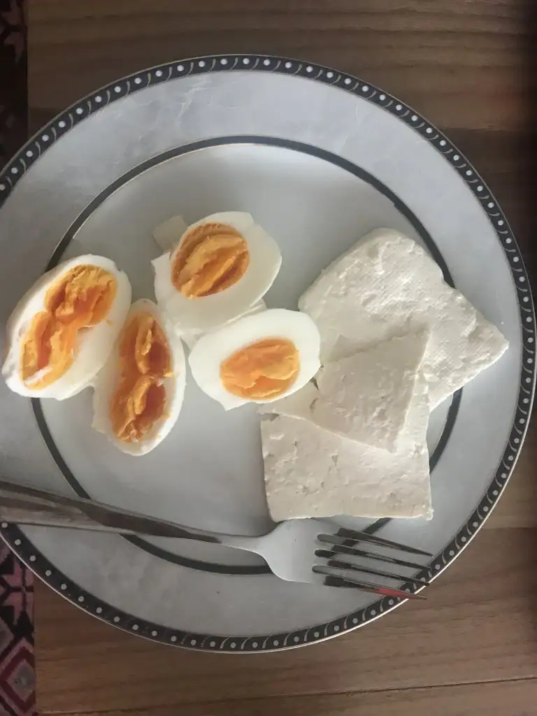Sabah 2 yumurta, 2 dilim peynirle kahvaltı.