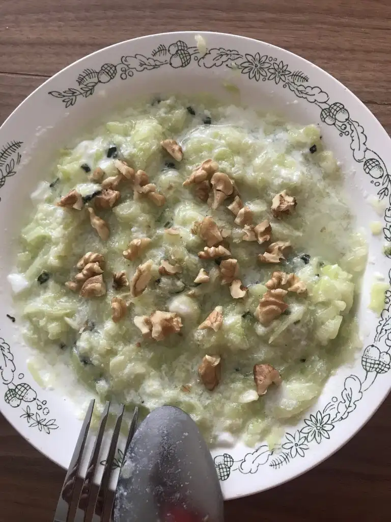 Öğle ve akşam 2şer kabağı ister az yağda kavur, ister fırınla, ister haşla. Üzerine 2 kaşık yoğurt ve 2 ceviz.