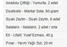 1 haşlanmış yumurta, 2 yk lor peyniri, 4 zeytin, 1 tane krep, biber, salatalık