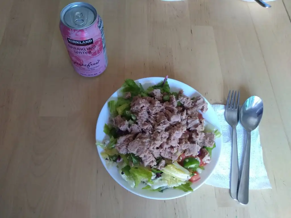 Dönüşüm öğlen 12 gibi olduğundan ilk öğünde bu sefer kahvaltı yerine aşağıda yer alan kızarmış tavuk (ekmeksiz) ve salata ile kahvaltımı yaptım.
