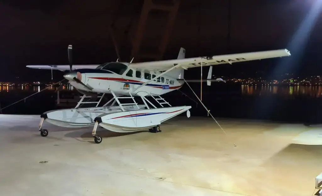 Deniz uçağını bir toplantıya giderken çektim ama arkada ki vinçten rahatsız olup bir de gece toplantı bitince dönerken çektim. Bu sayede vinci yok etmiş oldum.