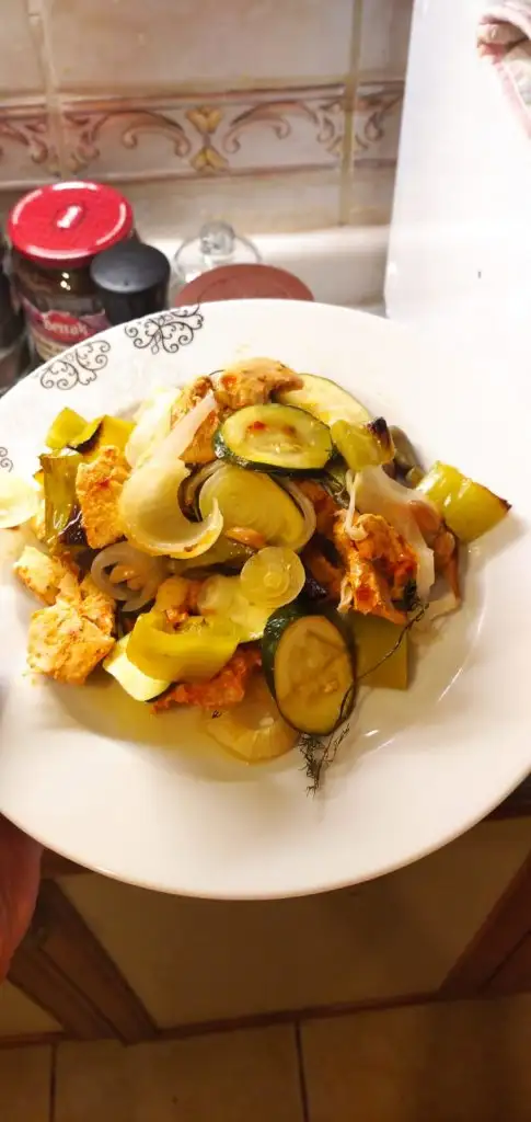 akşam: hindi + kabak/biber/soğan/yer fıstığı