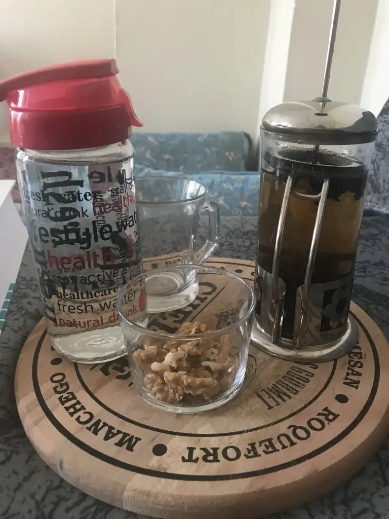 Cevizler yemesem bozulacaktı, ben de ara öğün yaptım yeşil çayla birlikte