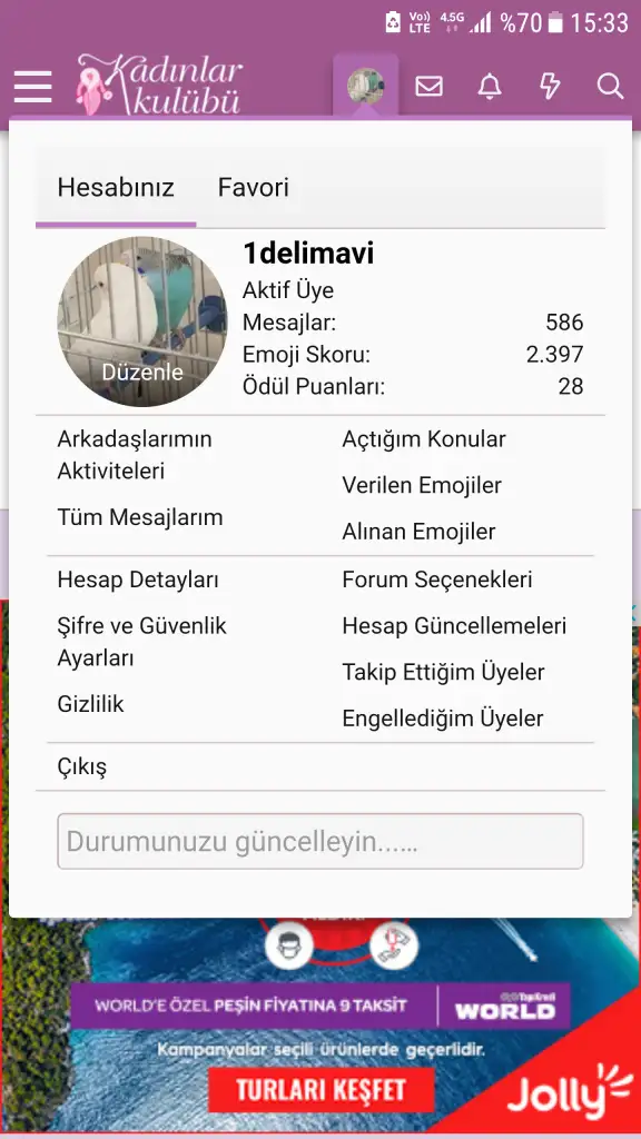 profılıme gırdım canımda hesap detayları nı goremedım anlarım halbukı pc den