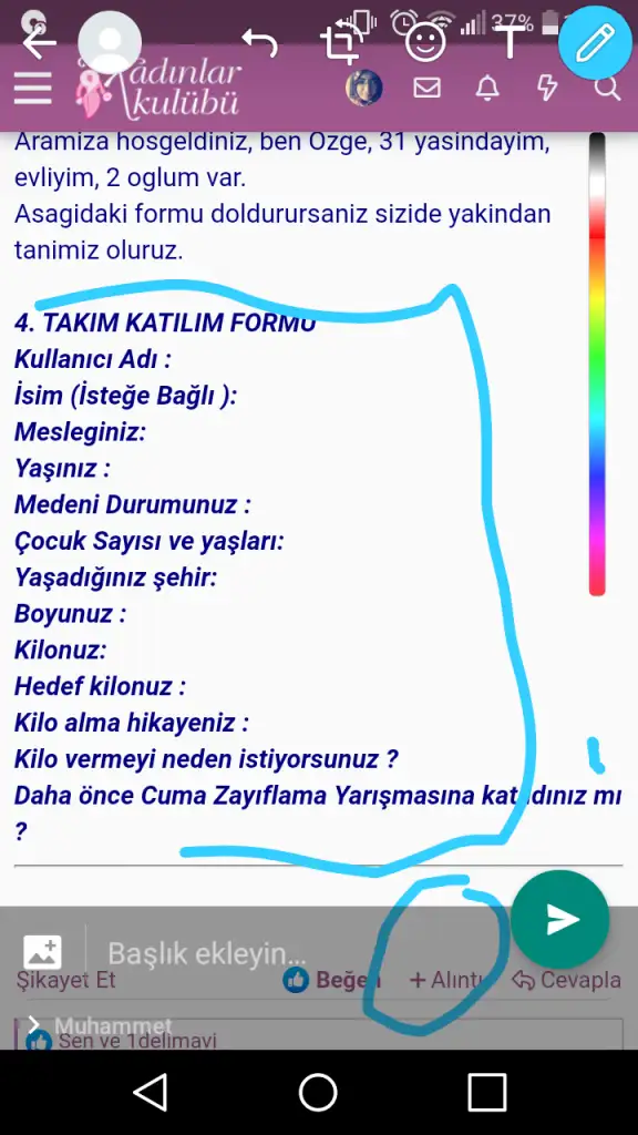 Hoşgeldin banu ben 28 yaşındayım 9 aylık oğlum var beraber güzel kilolar verelim4. TAKIM KATILIM FORMU