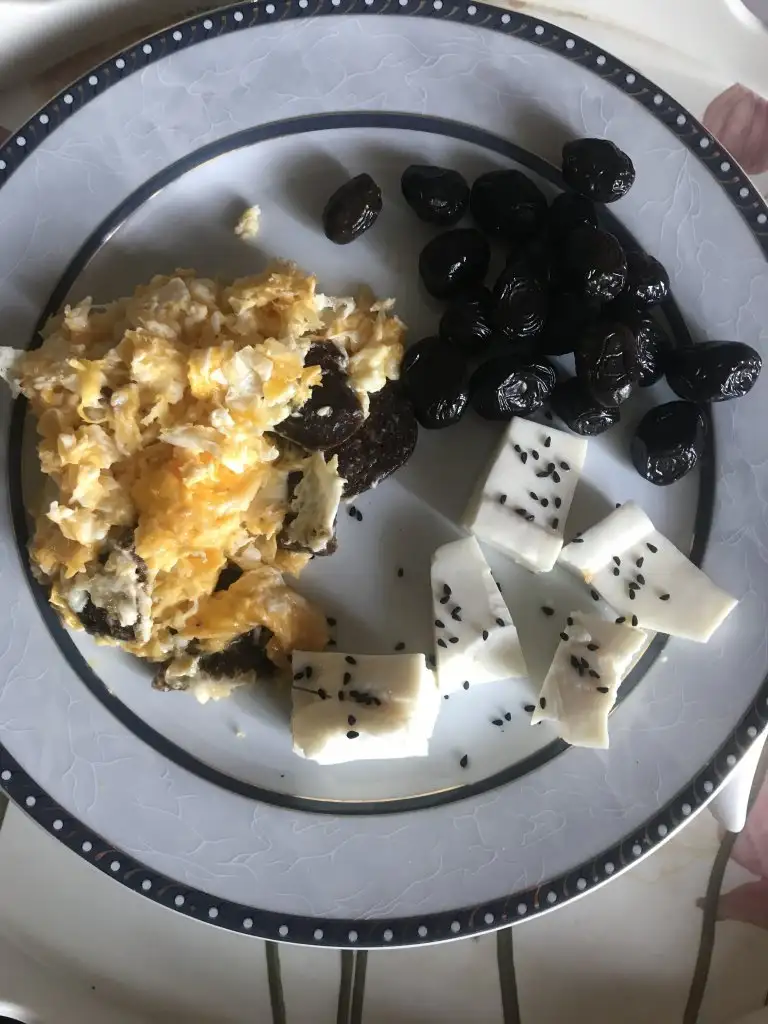 sabah 2 yumurta omlet, sucuk, ceviz