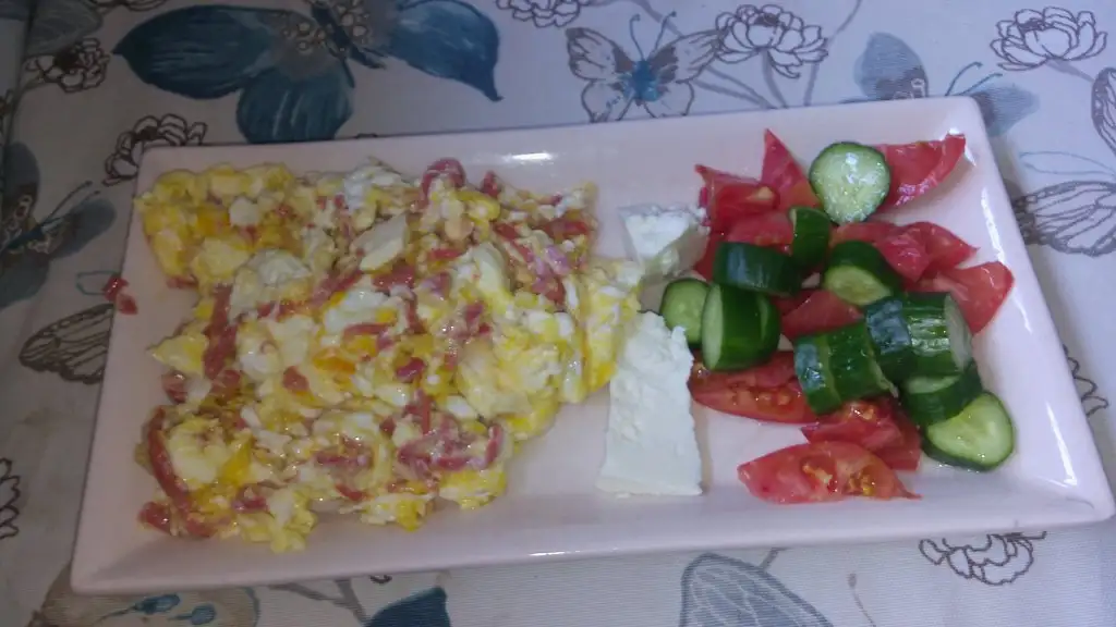 Kahvaltı: 1 haslanmıs yumurta, peynir, domates, salatalık