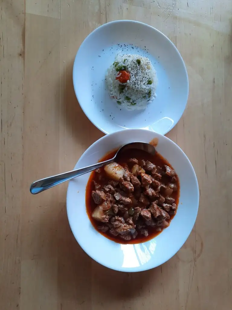 Akşam 2.5 yemek kaşığı Antep tava 2.5 yemek kaşığı pirinç pilavı