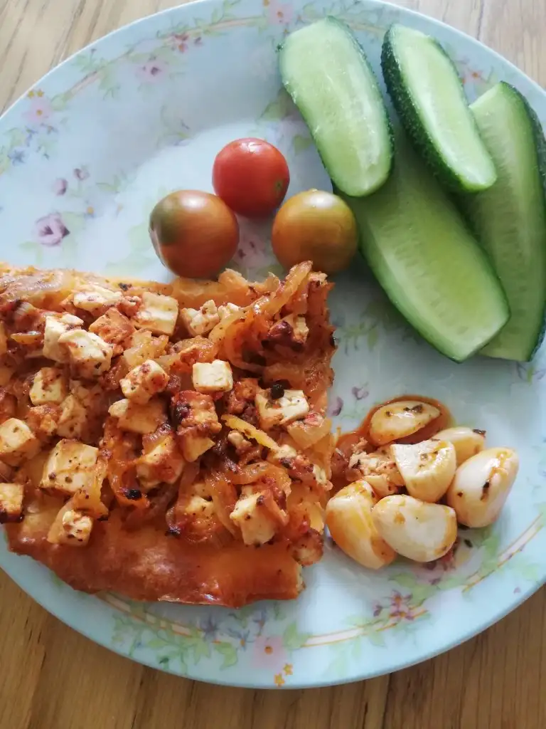 sabah 1 közde biber el kadar sucuklu omlet ama sucuğu fazla değil 1 paket meyveli kek 2 lokum