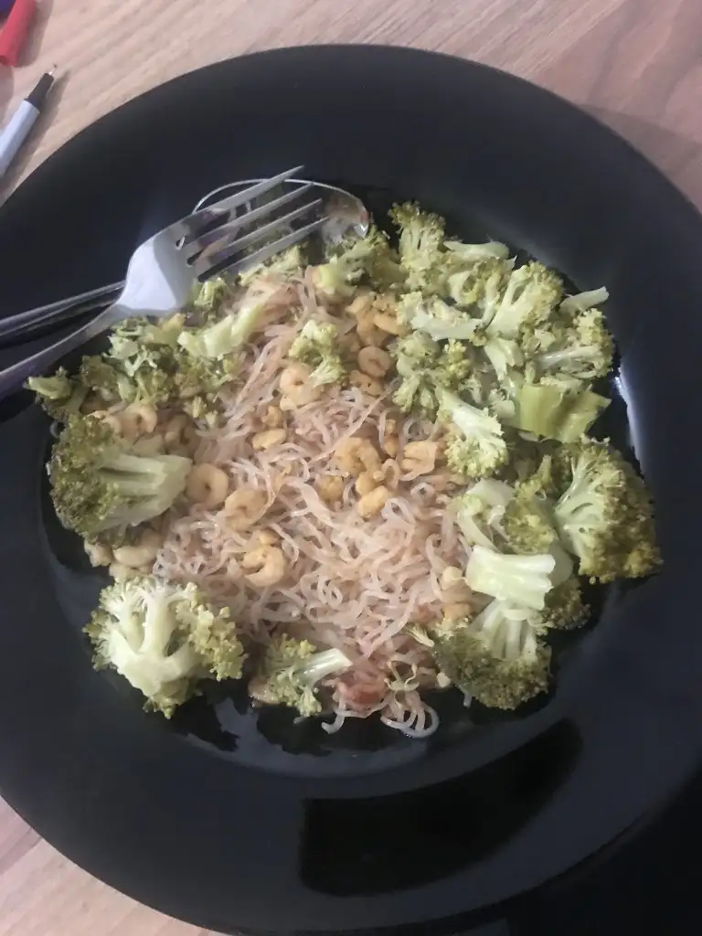 şu tabaktaki tek karbonhidrat brokoli 🥦 konjac noodle ilk defa denedim. Asla gerçek noodle gibi değil :) ama 0 karbonhidrat olması bir artı tabii.