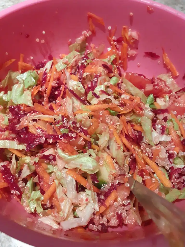 bolca salata yaptim yarim cay bardagi da kinoa ekledim.