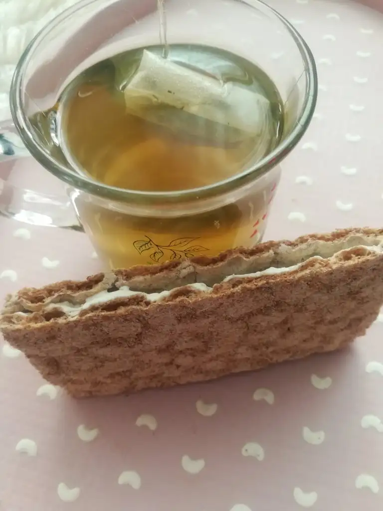 2 dilim beyaz peynir, 2 tane küçük Krep, domates, kapya biber
