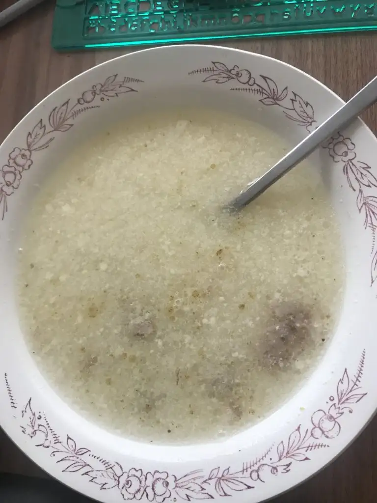 O kesilmiş olan çorbakuzu gerdan çorbası. Unsuz bağladım. Çorbada un tadı sevmiyorum ben. Nohut ve kuzu parçaları var içinde. 2 tabak içtim onun gibi. Şifa niyetine de içiyorum onu.