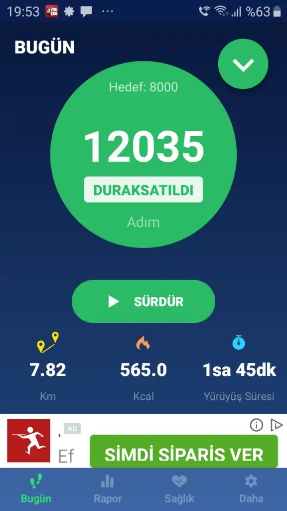 Haftasonu mumkundu. Hem sabah hem aksam ciktim. Dun evdeydim tum gün. 10bin tamamlayim diye catladim. Cunku cok uykusuz ve yorgundum.