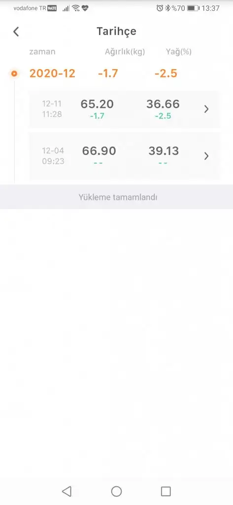 Öncesinde ekran fotosu atıyordum uygulamadan ilk kez tartı attım.tarihler yazıyor geçen hafta ve bu hafta.Mucizemsn canim bu senin tarti fotografin Ilk mi?