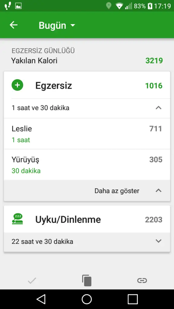 Tamamlayınca spor puanımı hesaplar yazarım akşam sadece salata yedim yeşil mercimekli