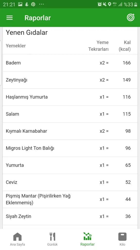 Ben kıymalı yumurta peynir 1 dilim ekmek yedim kahvaltıda. Şimdi şade kahvenin yanına 1 ceviz, 2 çatalda kıtır kabak reçelinin tanesinden yedim.