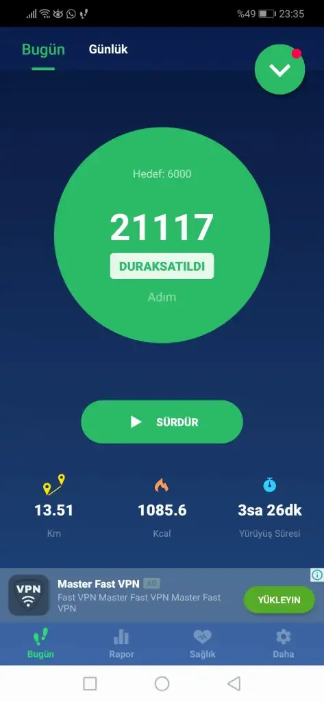 Kızlar bugün ki adım sayım budur. Ofiste oturarak çalıştığım için akşama kadar 1.500 civarındaydı. Kalanı tempolu harıl harıl yürüyüşle yapıldı. Aferin bana 💪🏼