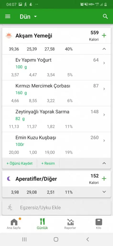 19:00 tarhana çorbası, 5 adet sarma, tavuklu patates yemeği