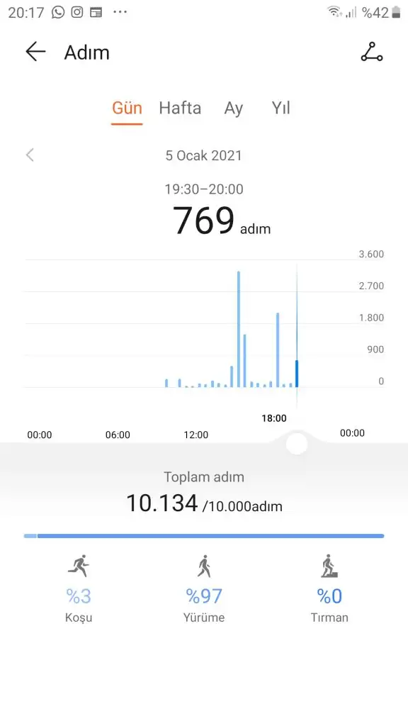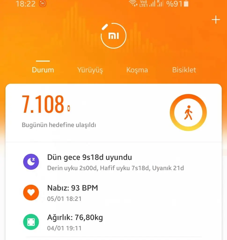 Ben bugun Daha kotuyum. Dun spor ve adim vardi baya. Bugun 5bin adim olmadi bile