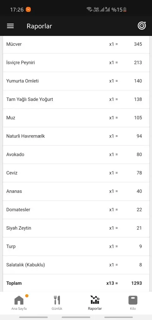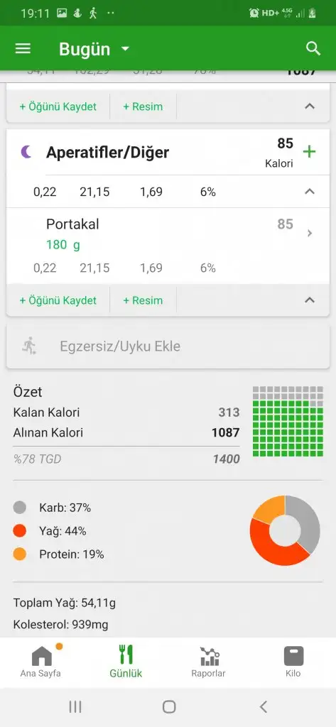 Bugünkü beslenmem biraz saçma oldu olduu 🤷 toplam 555 kalori