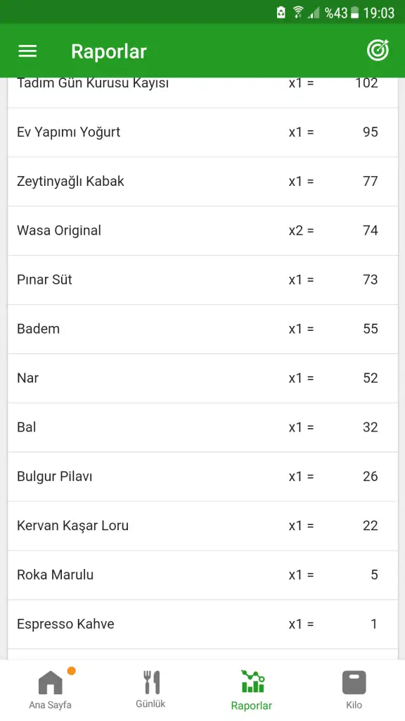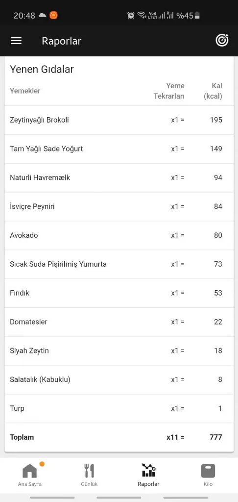Yediklerimi yazayım.