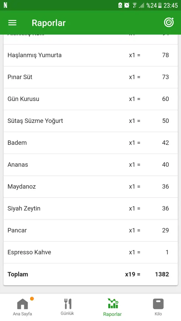 iki gündür yediklerimi bir uygulamaya aktariyorum. daha cok karbonhidrat, yag ve protein aliminimi görmek icin. ve fark ettim ki karbonhidrat veya yag yüksek oluyor, ama protein degerim düsük oluyor.